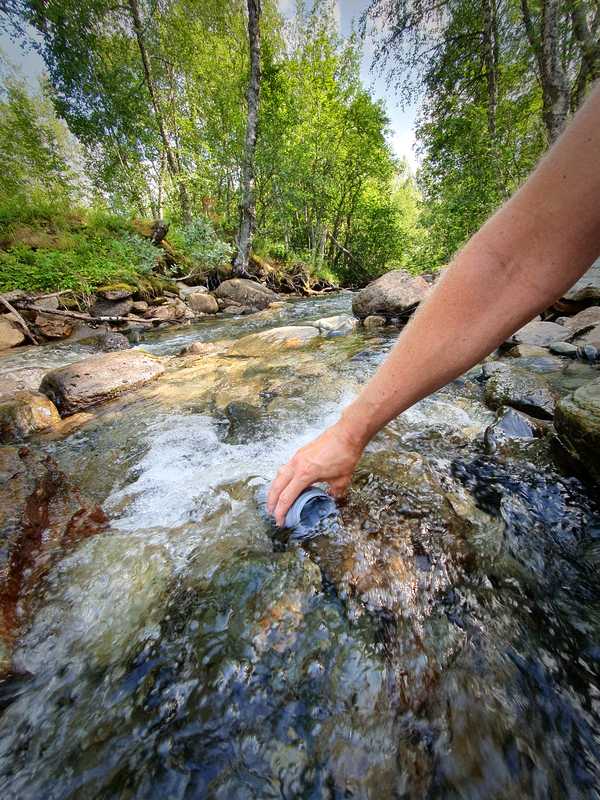 Det finns gott om bäckar och sjöar att fylla på från. För den som vill planera lite mer i detalj finns mer information i bonus-avsnittet vattentillgång.