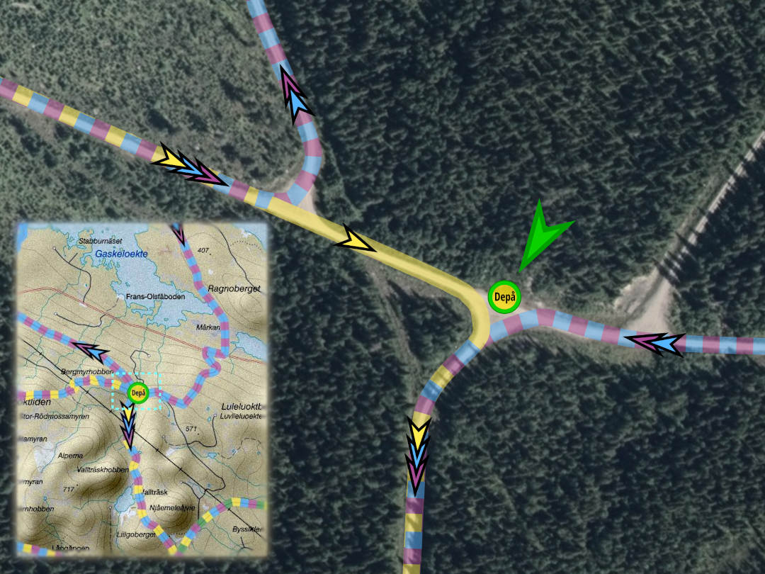 För de långa banorna (70 och 116 km, blå och lila sträckning i bilden) används samma depå två gånger. Depån är placerad för att vara i bästa läge sista gången den passeras, vilket innebär att den ligger lite utanför banan vid första passage. Man får då köra cirka 100 meter extra till andra korsningen. Det är skyltat.