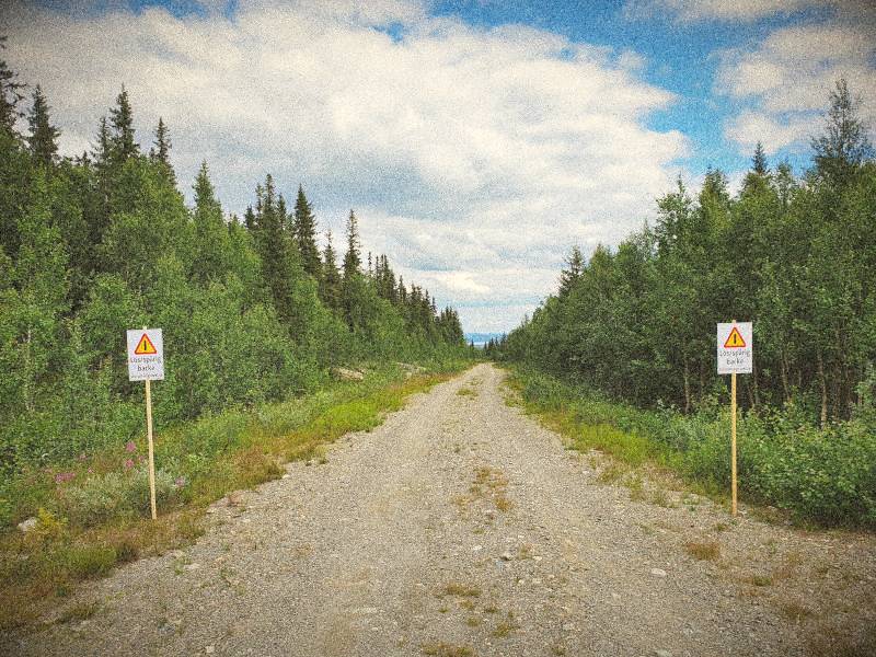 Utöver skyltar som visar körriktningen finns även varningsskyltar inför branta spåriga backar, och korsningar som kräver extra uppmärksamhet.