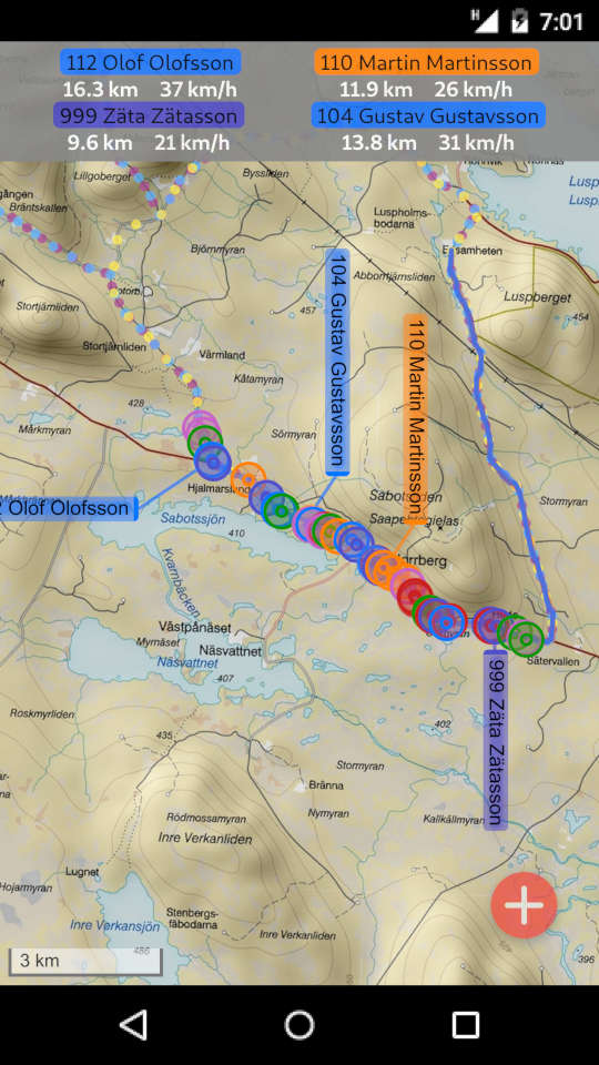 Vi erbjuder varje deltagare spårning under loppet genom att köra en gratis app tillhandahållen av våra sponsorer Xarepo AB och IT4U Sweden AB. Det gör att publik och vänner där hemma kan se var du och alla andra deltagare är ute på banan direkt här på webben.