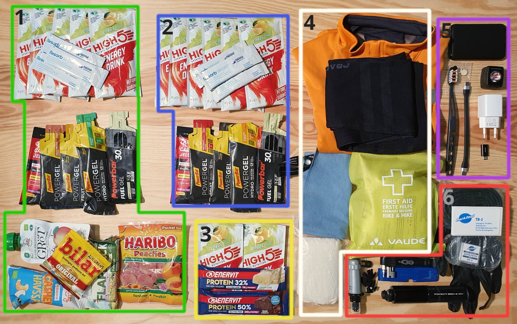 Har man inte kört den här typen av lopp förut kan man förvånas över mängden kolhydrater som man behöver frakta på cykeln. Tänk också på att mängden kläder som behövs kan variera kraftigt och ändras med kort varsel beroende på väderleken. Planera packningen och testpacka i god tid så du verkligen vet att du har det utrymme du behöver.