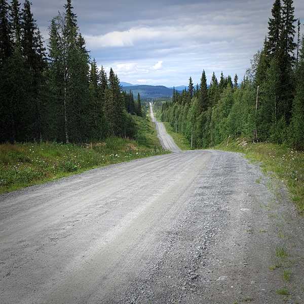Grusvägar är förändliga genom väder och var de är i underhållscykeln. Här ett exempel på en bit väg 21 km in på banan som vid tiden för bilden just fått nytt slitlager i form av grövre grus. Normalt är detta det grövsta grus man kan stöta på längs banan.